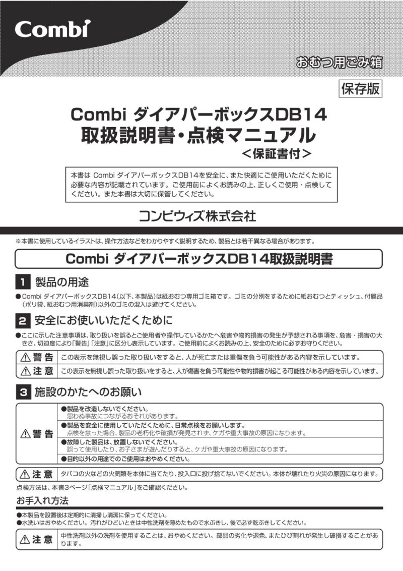 製品にはメンテナンスマニュアルが同梱包されています。必ずセルフチェックによる日常点検・定期点検の実施をお願いいたします。